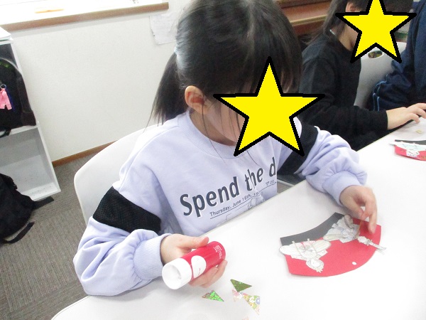 塗り終えた後は折り紙を貼って装飾していきます✨